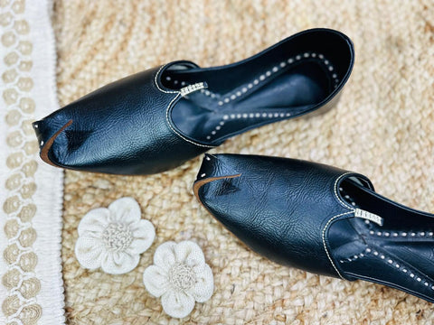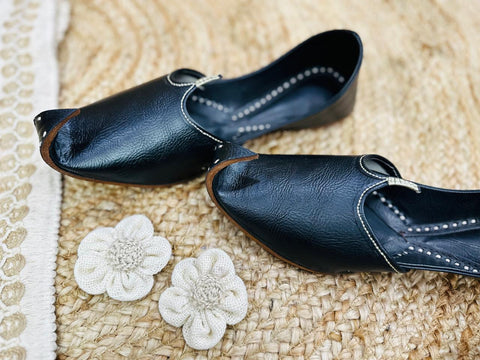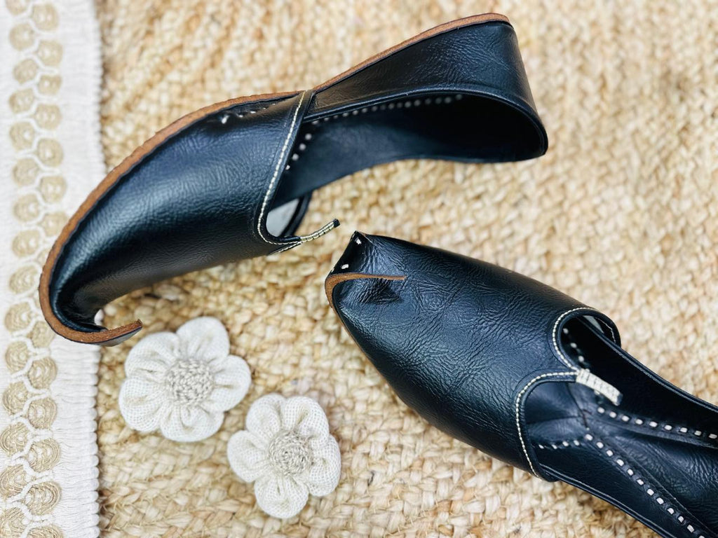 This is beautiful pair of khussa also known as mojari or jutti, this is traditional Indian handcrafted leather shoes. It's Pointed, curled-up toe (the nokh) is often associated with punjabi or rajasthani craftmanship.