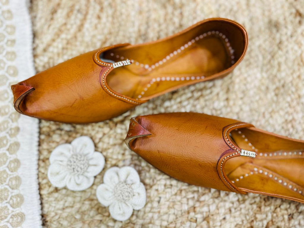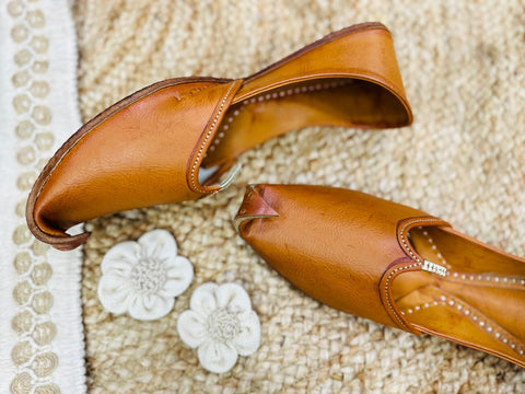 This is beautiful pair of khussa also known as mojari or jutti, this is traditional Indian handcrafted leather shoes. It's Pointed , curled-up toe (the nokh) is often associated with punjabi or rajasthani craftmanship.