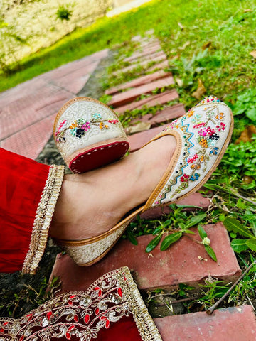 This is traditional wear hand embroidered jutti, Multi silk threads zardozi work knots or Gold sequence are used beautifully.