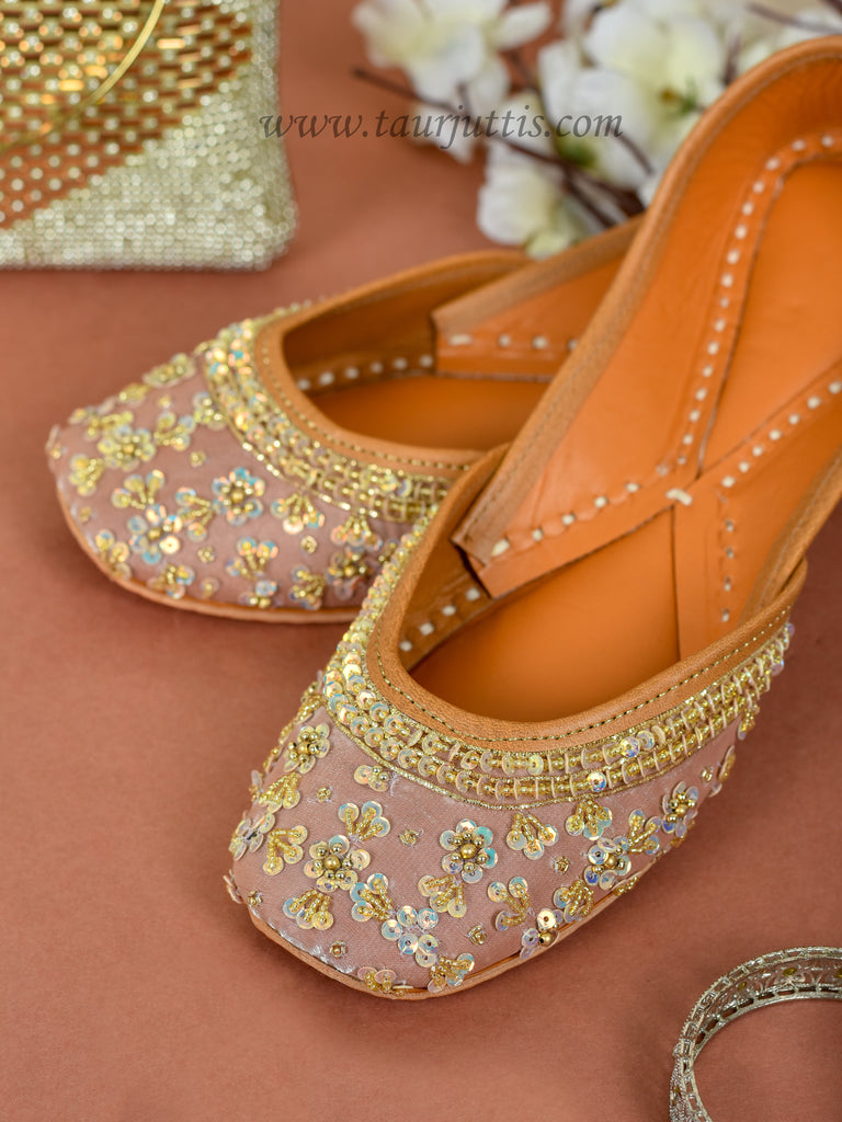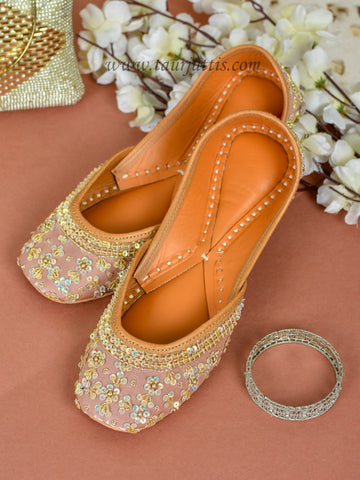 Rose Gold Pink Flower Jutti