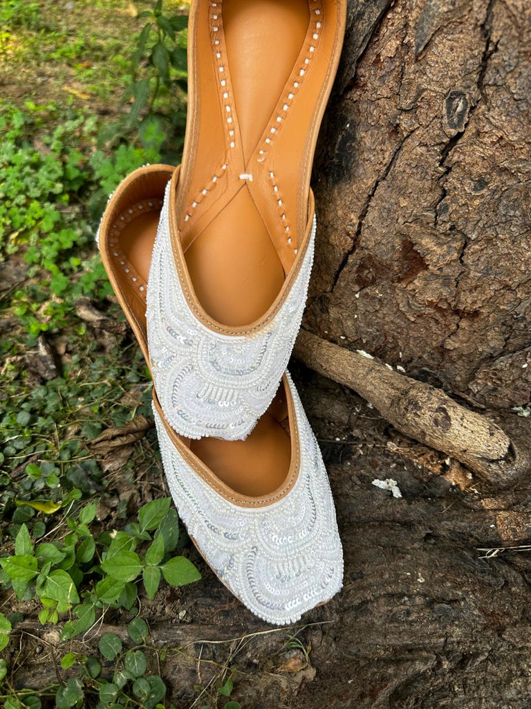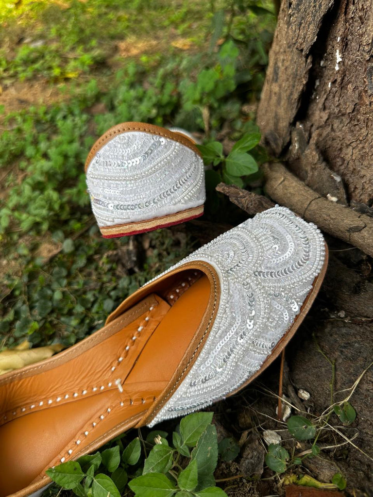 It is traditional wear jutti with white beads work.